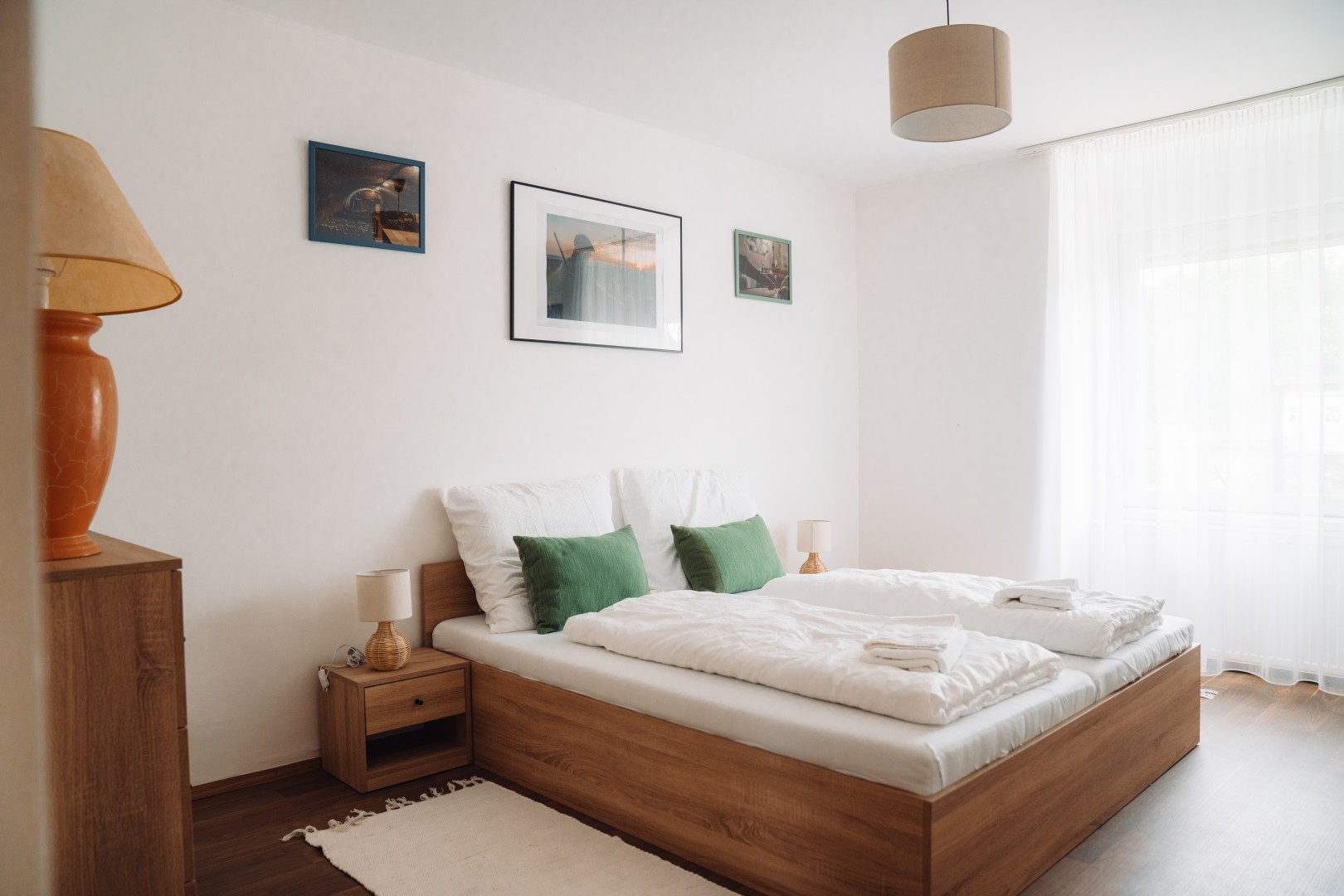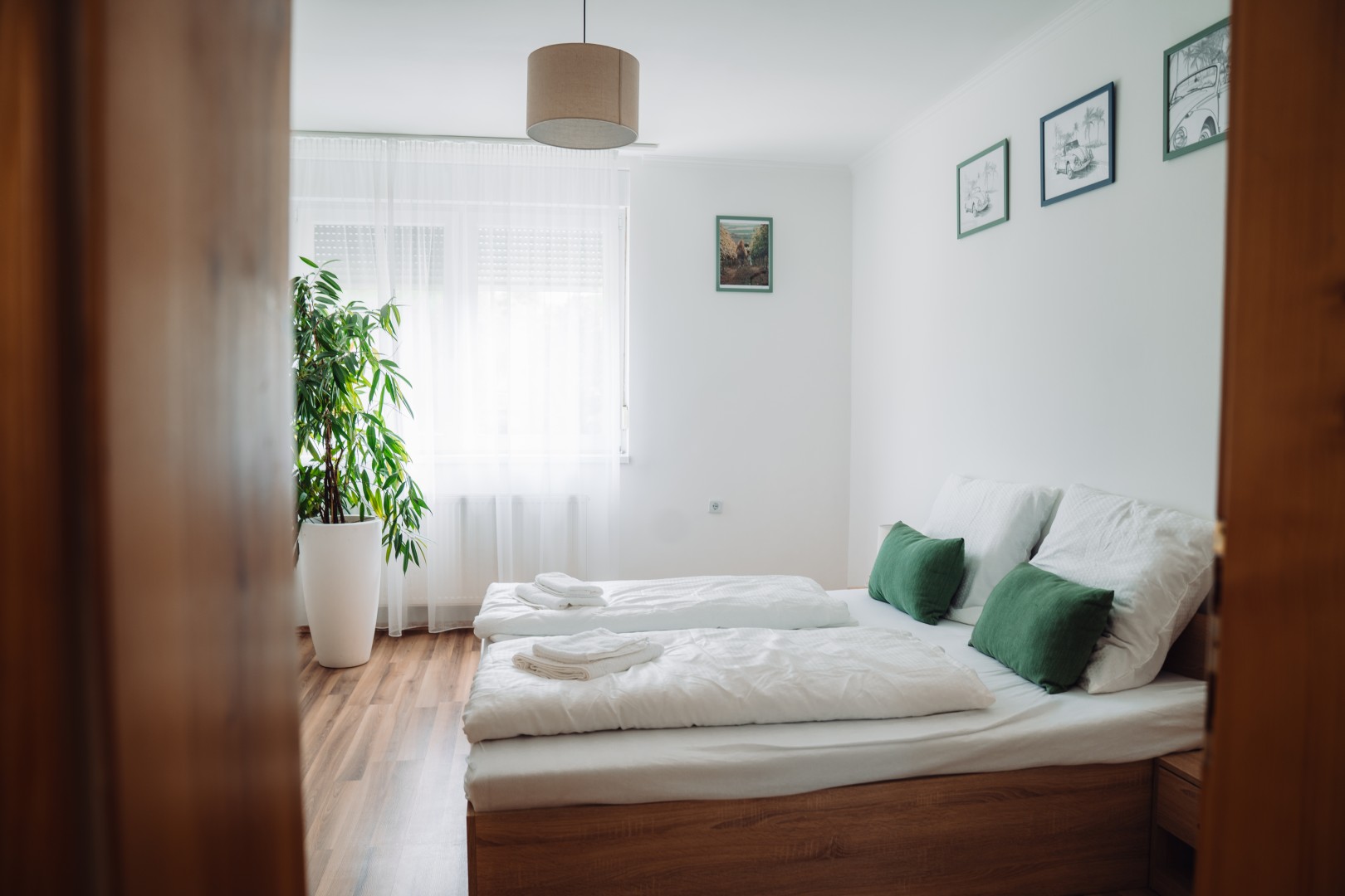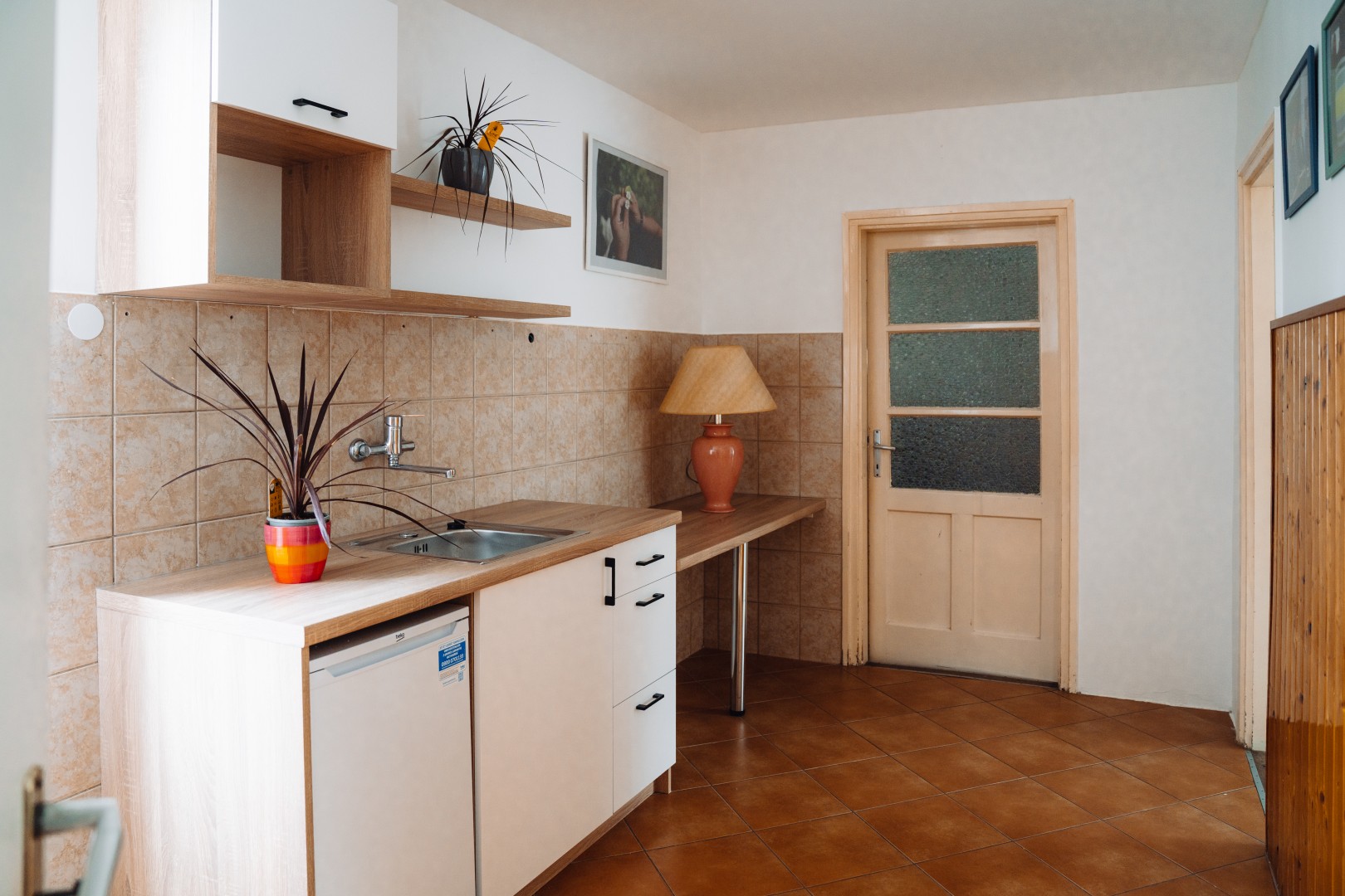 Egy hálószoba, egy nappali, konyha – minden megvan, amire egy hosszú hétvégén szükségetek lehet. Letisztult, otthonos, falusias részletekkel – pont annyira rusztikus, amennyire Mór, a szőlő és a bor megkívánja.