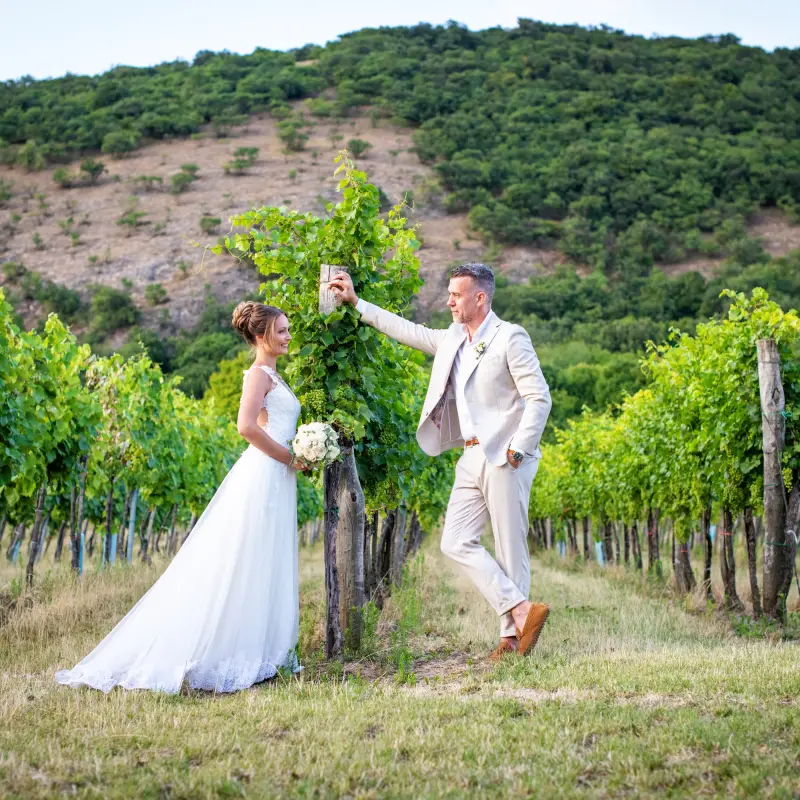 Mi nemcsak egy esküvői helyszín vagyunk, hanem egy olyan csapat, akik komplett élménnyel ajándékoznak meg. Csapatunk rutinos, lelkes és rátok hangolt, boraink pedig nem mellékszereplők, inkább olyanok, mint egy jó ceremónoiamester – szinte láthatatlanul, mégis hatékonyan egyengetik a nagy nap alakulását, hogy a végén azt mondhassátok: pont ilyenre gondoltunk.
